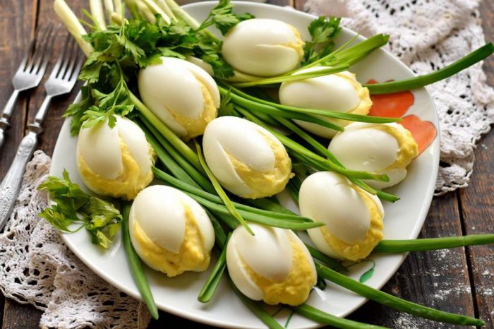 Такі тюльпани обов’язково привернуть увагу всіх ваших гостей. Таким чином можна подати фаршировані яйця з будь-якою начинкою, яка вам до вподоби.