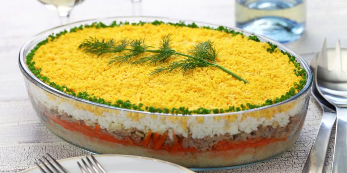 Тим часом яйця відваріть круто, остудіть і наріжте маленькими кубиками або потріть на тертці.