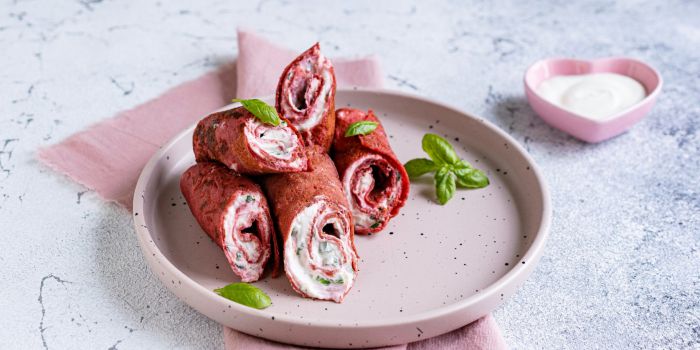 Бурякові млинці з вершковим сиром та базиліком — це яскрава, ефектна страва. І все завдяки подрібненому буряку, завдяки якому тісто для млинців набува...
